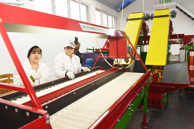 Далее президент ознакомился с деятельностью предприятия ООО «Дехаи ман», которое занимается фасовкой фруктов, сухофруктов и овощей и имеет 6 линий по переработке и упаковке сельхозпродукции. Было отмечено, что рабочее оборудование предприятия работает в автоматическом режиме и может фасовать 3 тонны овощей и до 120 килограммов зерновых продуктов в час.