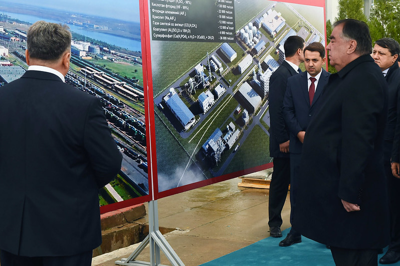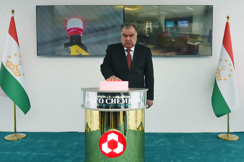 Сегодня в рамках своей рабочей поездки в Хатлонскую область президент республики Эмомали Рахмон в Яванском районе принял участие в сдаче в эксплуатацию предприятия по производству азотных и фосфорных удобрений в ООО «ТАЛКО Кемикал».