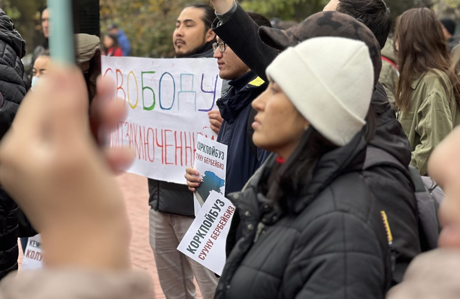В поддержку задержанным и с требованиями немедленного прекращения политических гонений акции протеста прошли в Бишкеке, Оше, Узгене и Токмаке.