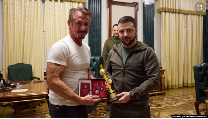 Голливудский актёр Шон Пенн в Киеве встретился с президентом Украины Владимиром Зеленским. Пенн подарил Зеленскому свою статуэтку «Оскар» — главный приз Американской киноакадемии. Актёр назвал подарок символом надежды и веры в победу Украины, пишет портал hromadske.ua.