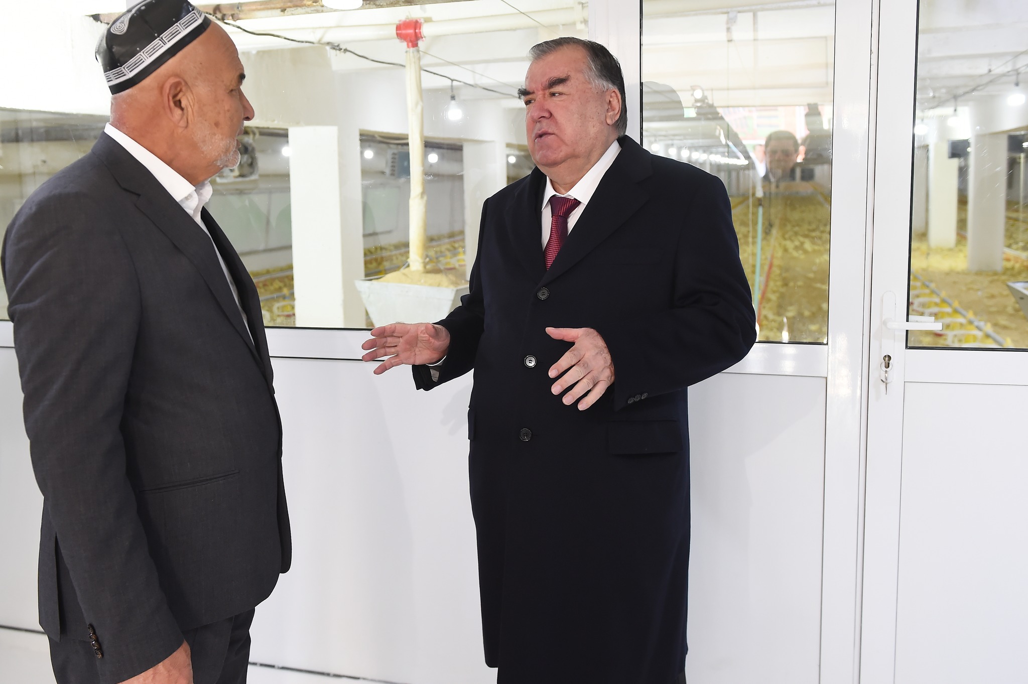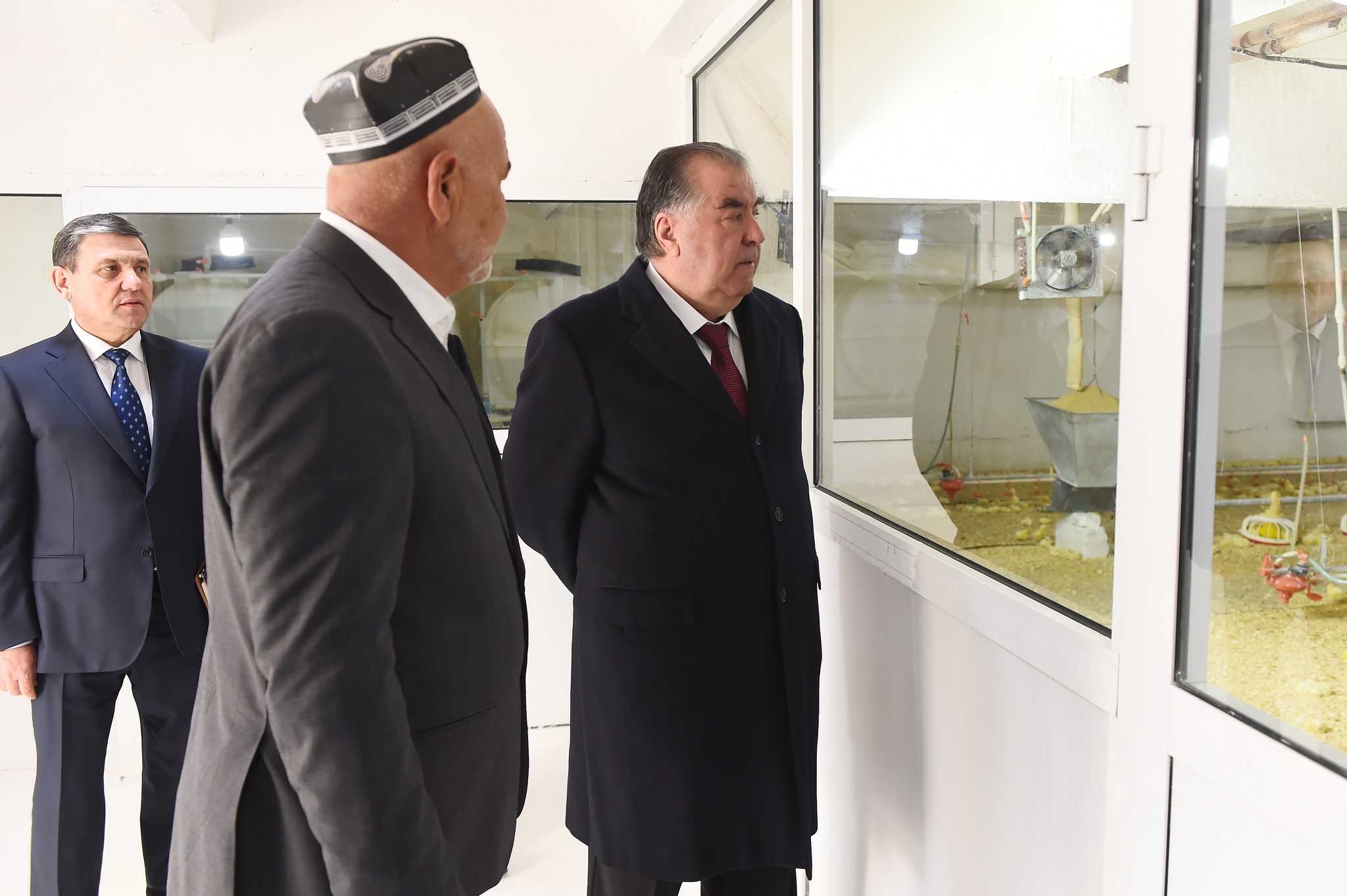 Президент посетил новую птицефабрику ООО «Бахори Пурфайз», построенную местным предпринимателем Эргашем Отаджоновым. Фабрика имеет возможность поставлять на рынки страны до 1600 тонн куриного мяса.