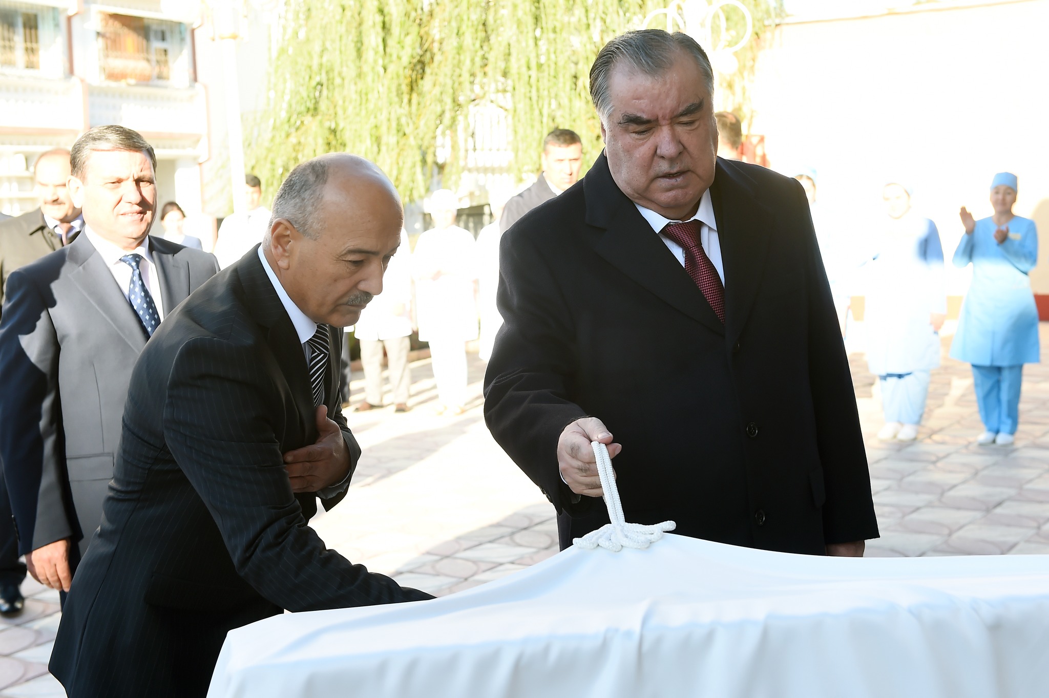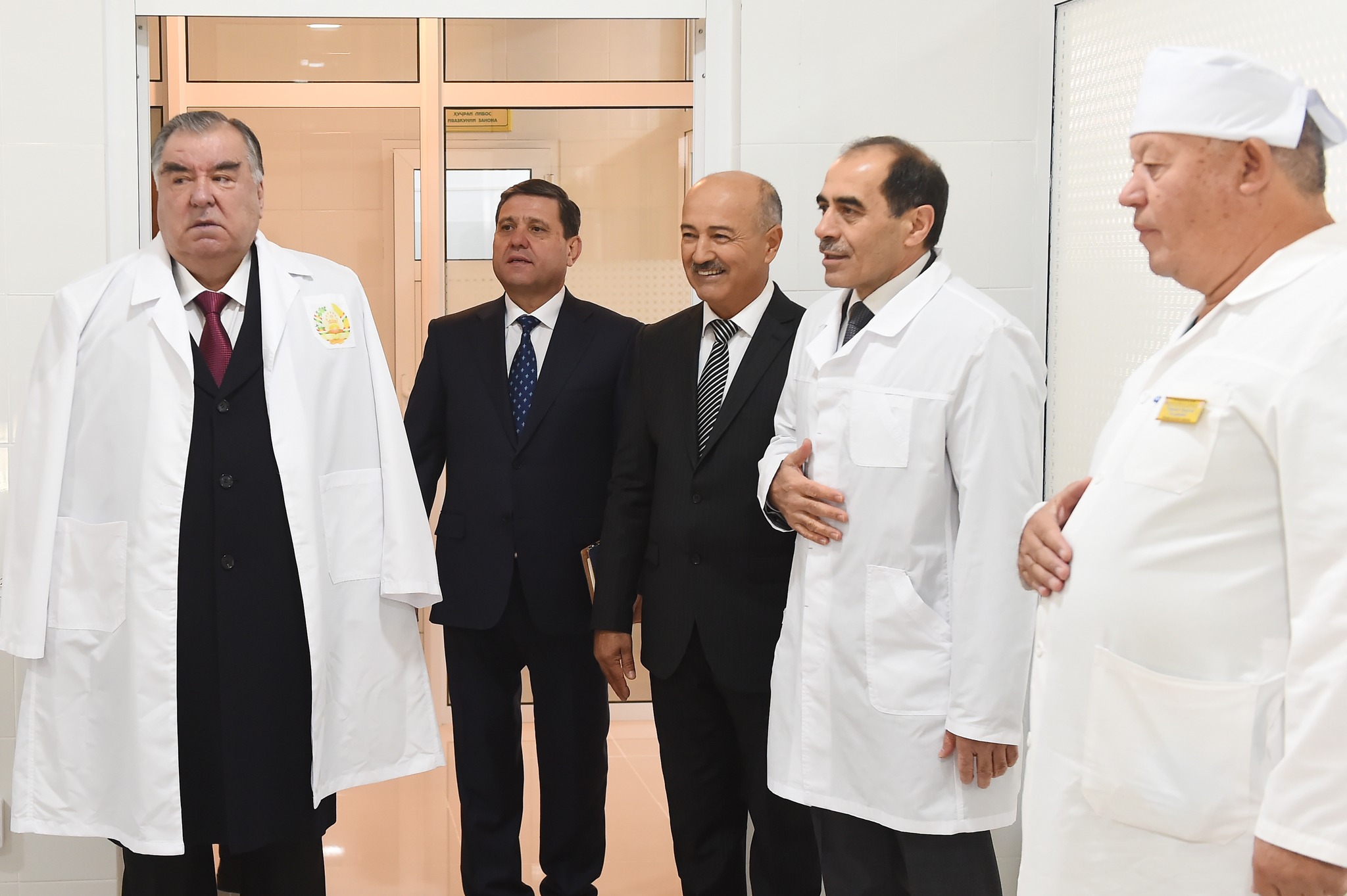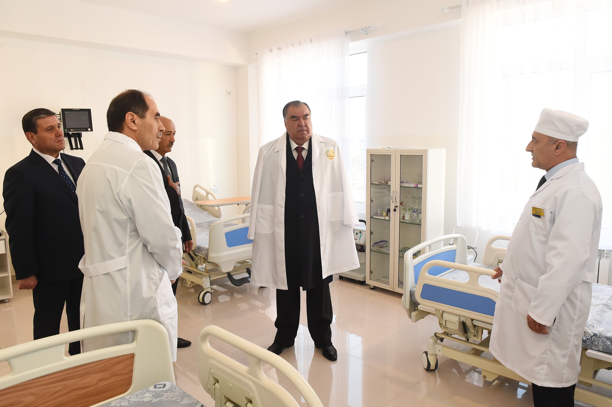 Глава государства также принял участие в запуске работы диагностическо–лечебного центра «Хоким». Новое медучреждение построено отечественным предпринимателем Эмомали Азимовым. Тут создано 40 рабочих мест. Строительные работы на этом объекте начались в апреле 2015 года.