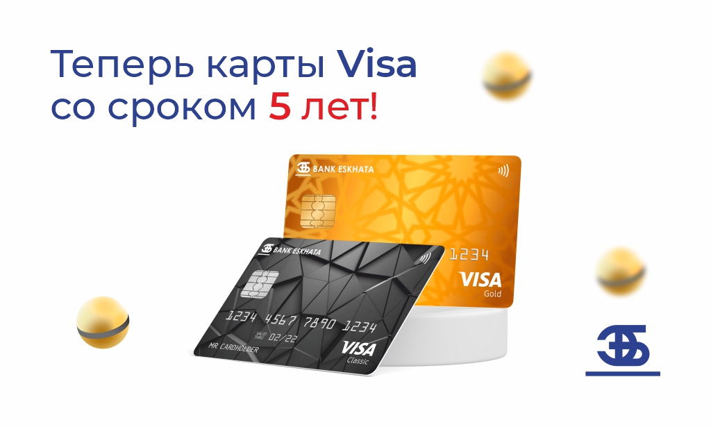 Стоимость на карты VISA остаются без изменений. При заказе карты через Эсхата Онлайн клиенту предоставляется 50% скидка на стоимость карты. Срок действия карты составит 5 лет, независимо от способа заказа карты.
