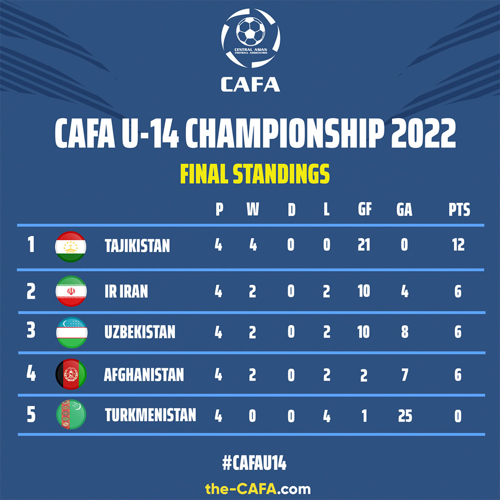 Победой команды Таджикистана в Гиссаре завершился чемпионат Центрально-Азиатской футбольной Ассоциации (CAFA) среди юношеских сборных до 14 лет.