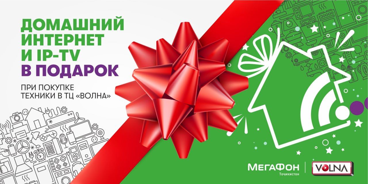 Приобретая любую бытовую технику на сумму от 5000 сомони в ТТЦ «Волна», покупатель может сразу подать заявку на подключение проводного интернета от компании «МегаФон Таджикистан». Первый месяц пользования тарифом «Для дома 3 Мбит/с» будет бесплатным. И это ещё не все плюсы совместной акции от оператора новых цифровых возможностей и сети техно-торговых центров.