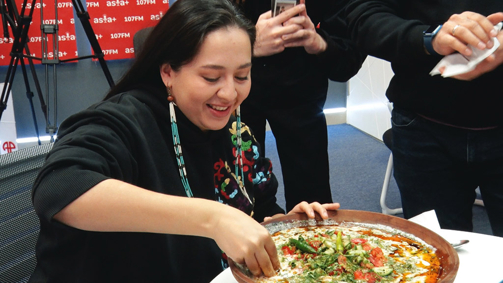 Так как она любит курутоб, мы сделали ей сюрприз, и занесли прямо в эфир это блюдо. А она – не могла устоять, и ела за эфирным столом. Это было очень трогательно!
