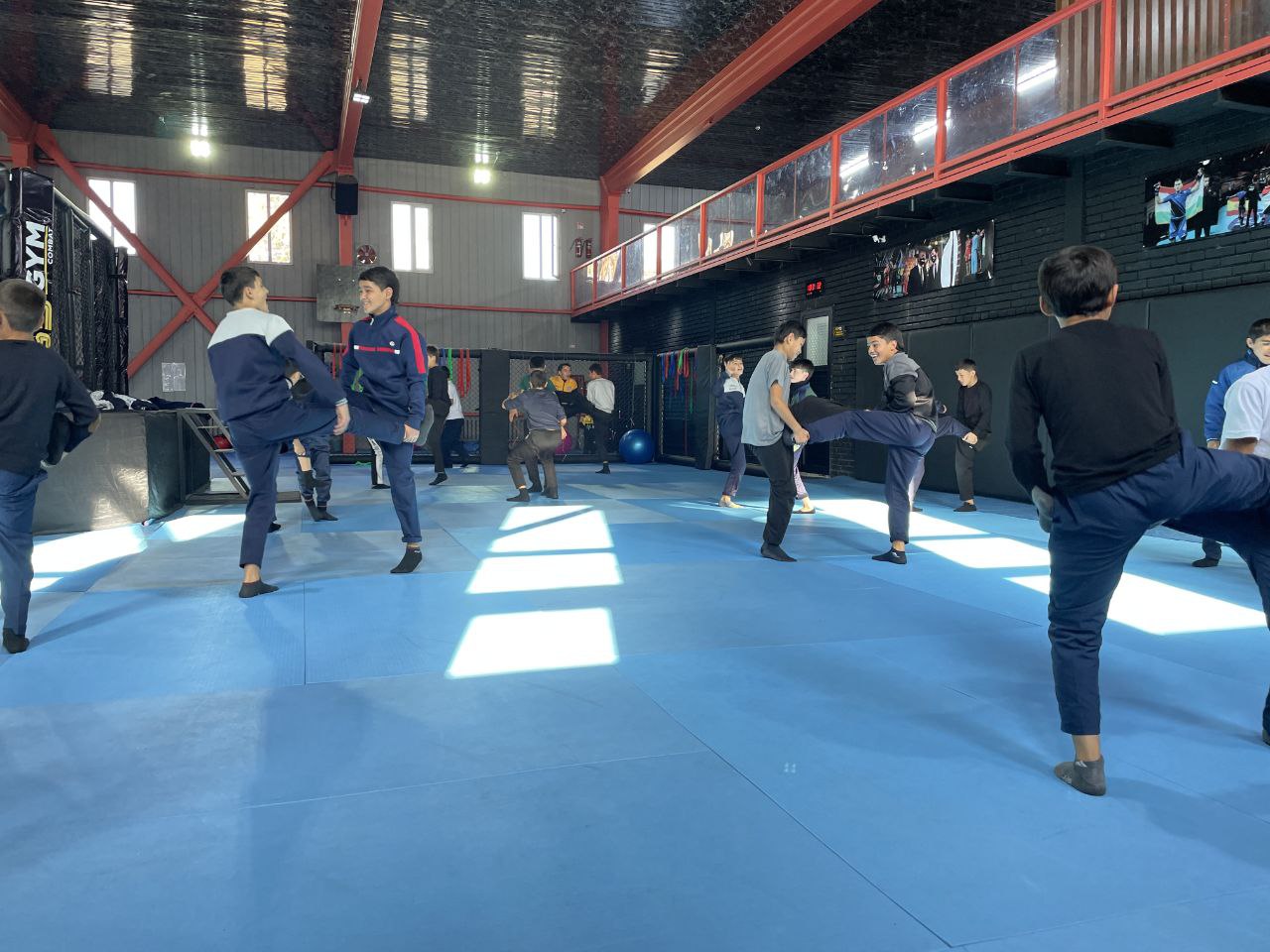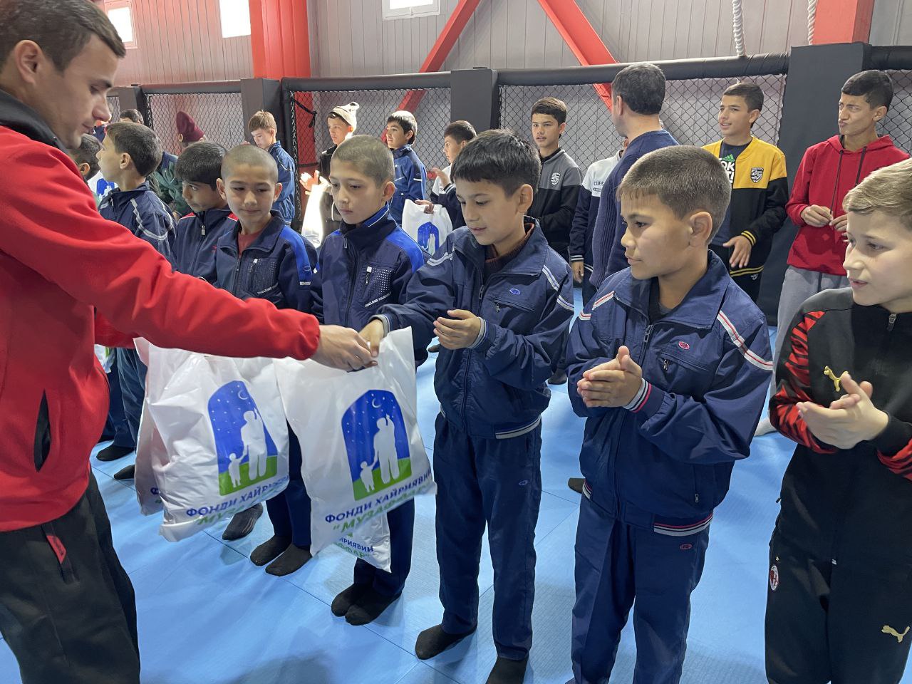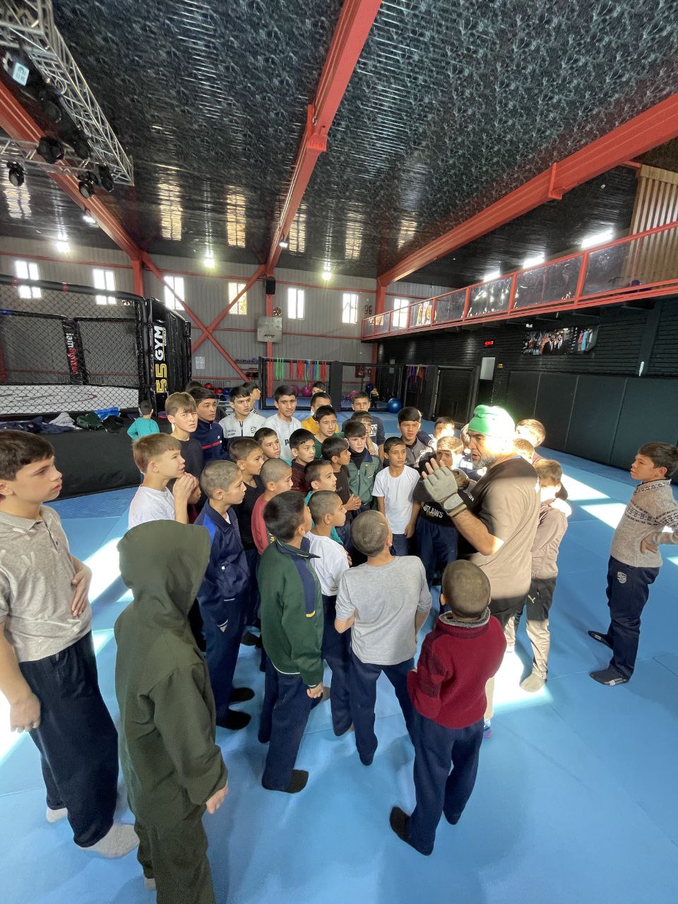 Представители холдинга привезли больше 40 воспитанников интерната на тренировку в современный спортивный зал «55 GYM Combat», специализирующийся на занятиях боевыми видами спорта и оснащенный профессиональным оборудованием.