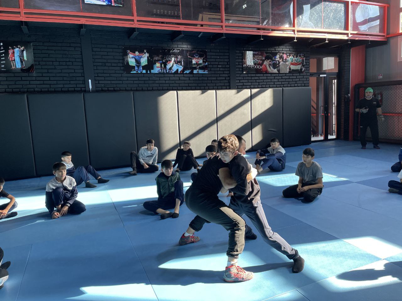 Квалифицированные тренер по вольной борьбе Джамшед Абдуллоев и тренер по греко-римской борьбе Зафар Соибназаров провели для ребят общую тренировку, адаптированную под их уровень подготовки, и сумели увлечь всех юных спортсменов, которые с удовольствием выполняли задания тренеров.