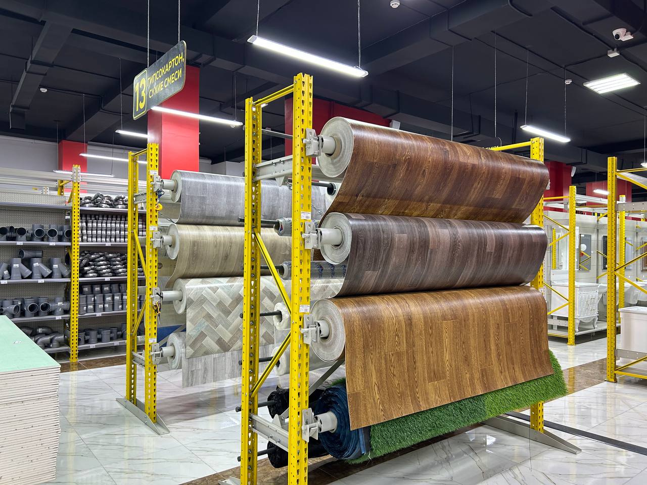 Тут же представлены ламинат, в том числе престижной австрийской марки Egger, обои разных оттенков и расцветок из России и Италии, клеи для обоев и растворители.