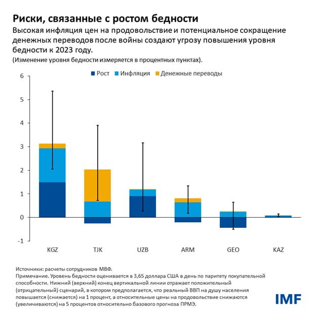 Аналитики Фонда отмечают, что, несмотря на отмечаемые до сих пор неожиданные положительные побочные эффекты, война в Украине может повлечь за собой рост уровня бедности примерно на 1 процентный пункт в разных странах региона за счет влияния на инфляцию и денежные переводы.