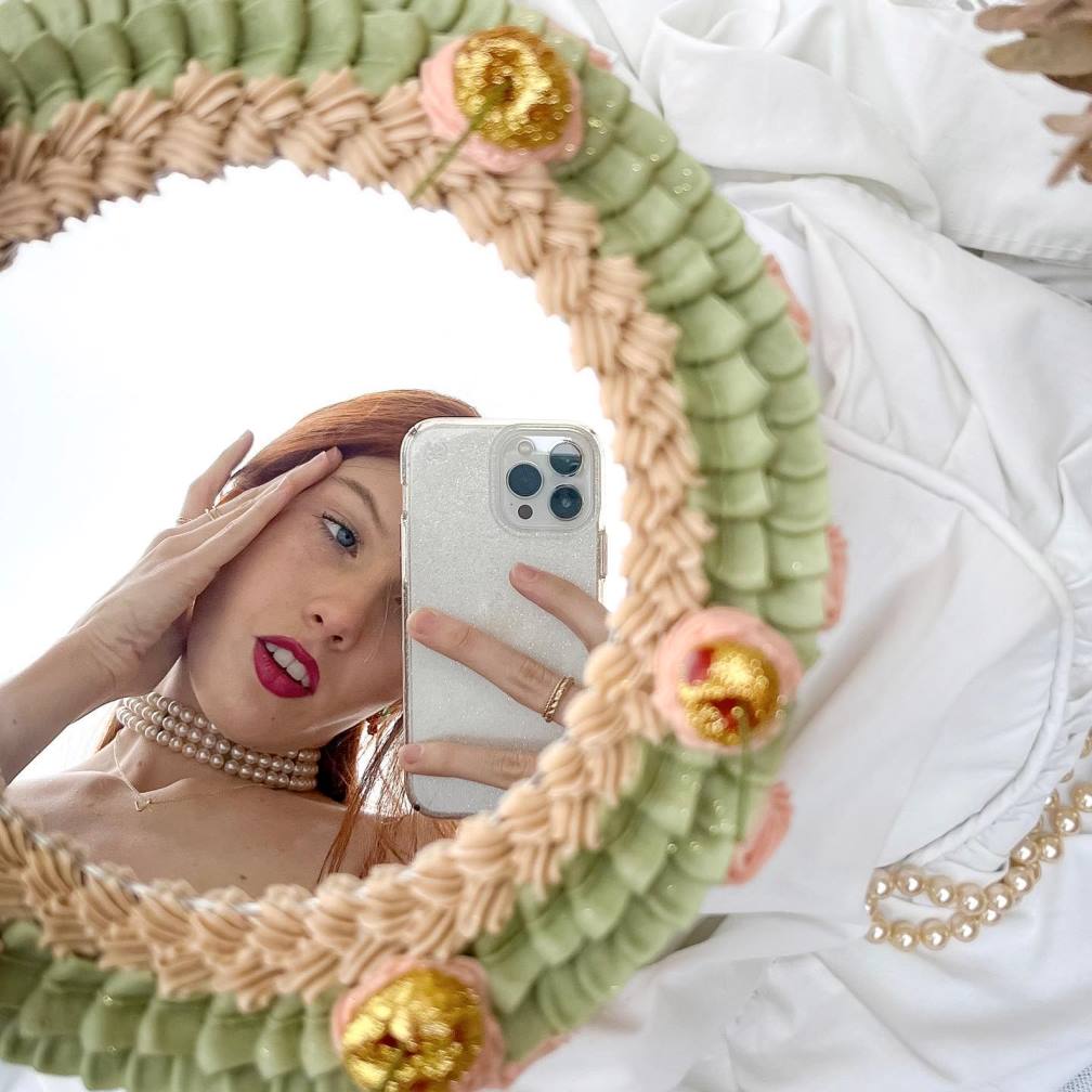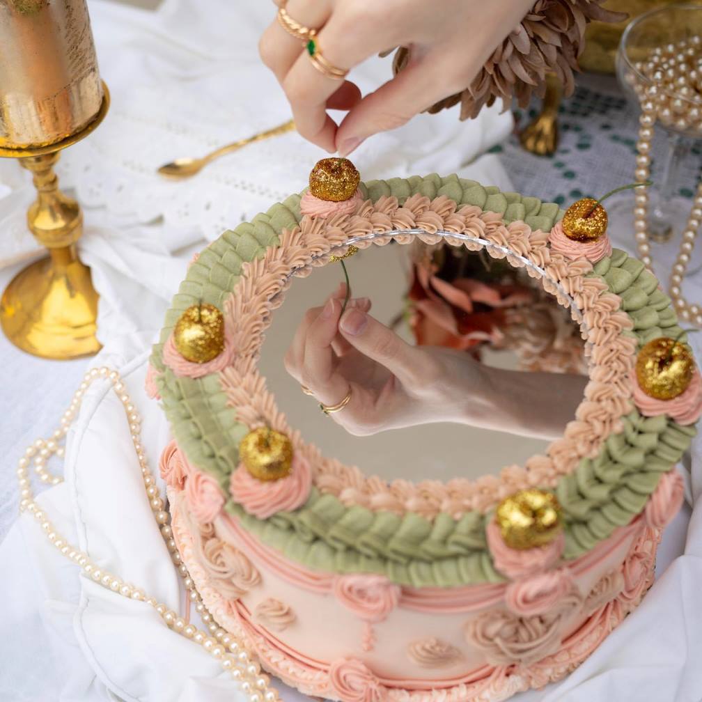 Суть в том, что на торт крепится зеркало. Но нужно учесть, что материал должен быть пищевым: из акрила. Зеркало в любом случае несъедобно, но и в то же время не опасно при соприкосновении с пищевым продуктом. От торта оно изолируется с помощью пергамента и предварительно обрабатывается.