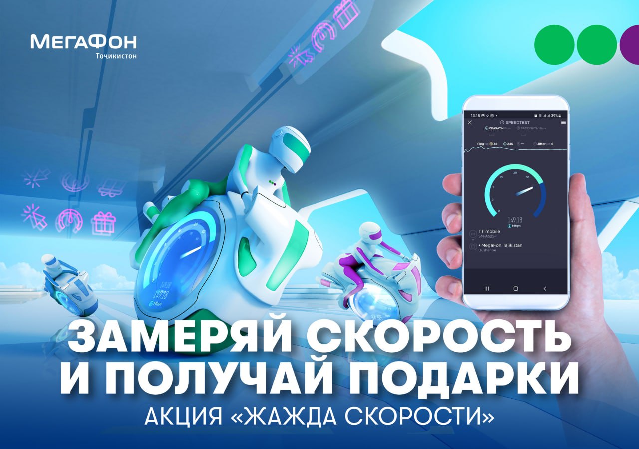 МегаФон Таджикистан 5 декабря снова запускает популярный конкурс «Жажда скорости». Абоненты, которые зафиксируют самую высокую скорость мобильного интернета в приложении «Speedtest» от Ookla, получат крутые подарки: Яндекс Станции «Алиса», годовые интернет-пакеты объемом в 60 Гб и драгоценные «золотые» номера. Конкурс продлится до 27 декабря.