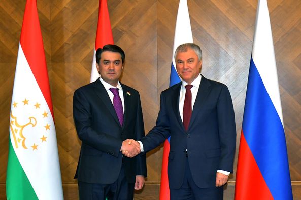 После этого Рустам Эмомали провел встречу с председателем Госдумы Федерального Собрания России Вячеславом Володиным.