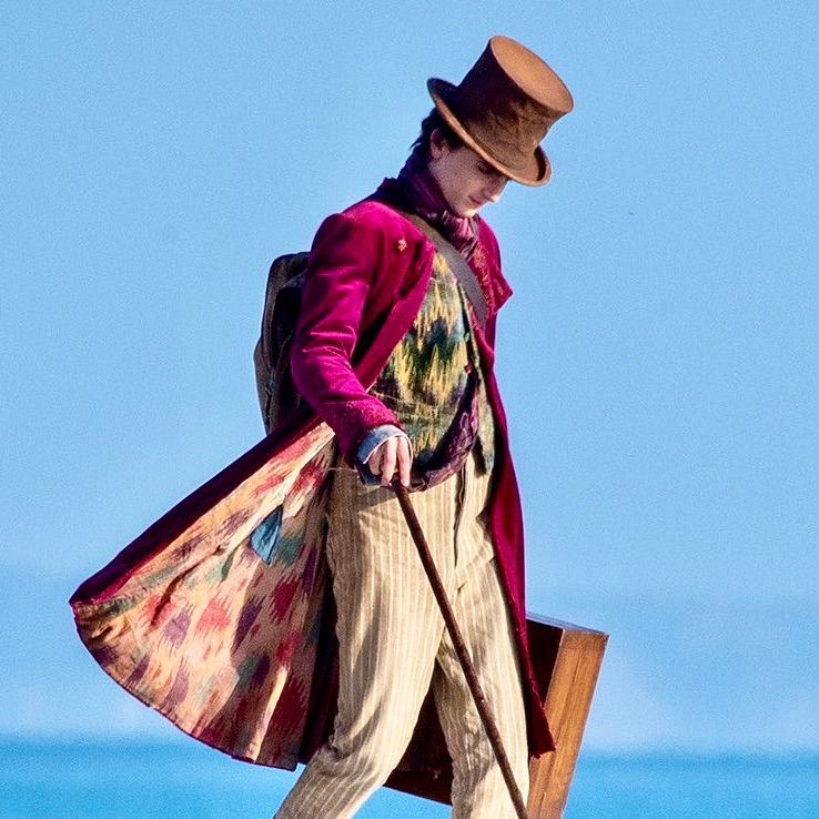 В грядущем 2023 году планируется премьера нового спин-оффа про весёлого владельца шоколадной фабрики Вилли Вонки. В этот раз роль главного героя досталась восходящей звезде Голливуда – Тимоти Шаламе. Но вишенка не в этом, а в камзоле Вилли. В сеть просочились фото со съёмочной площадки, где отчетливо видно, что подклад камзола это наш адрас (икат). Ждём выхода картины, чтобы разглядеть всё подробнее.
