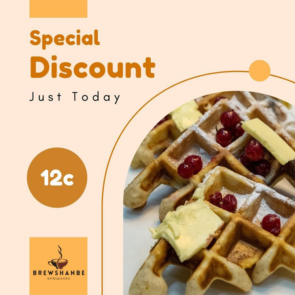 Гвоздём программы в кафе являются одни из самых лучших бельгийских вафель в Душанбе. Мягкие, воздушные, в меру сладкие – идеальные для хорошего начала дня или ланча. Ко всему прочему к ним можно выбрать топпинг – по просьбе посетителей вафли подадут с настоящим кленовым сиропом, джемом с кусочками сливочного масла, а также с печеньками “Орео”, политыми сверху шоколадом. Brewshanbe – находка для сладкоежек.