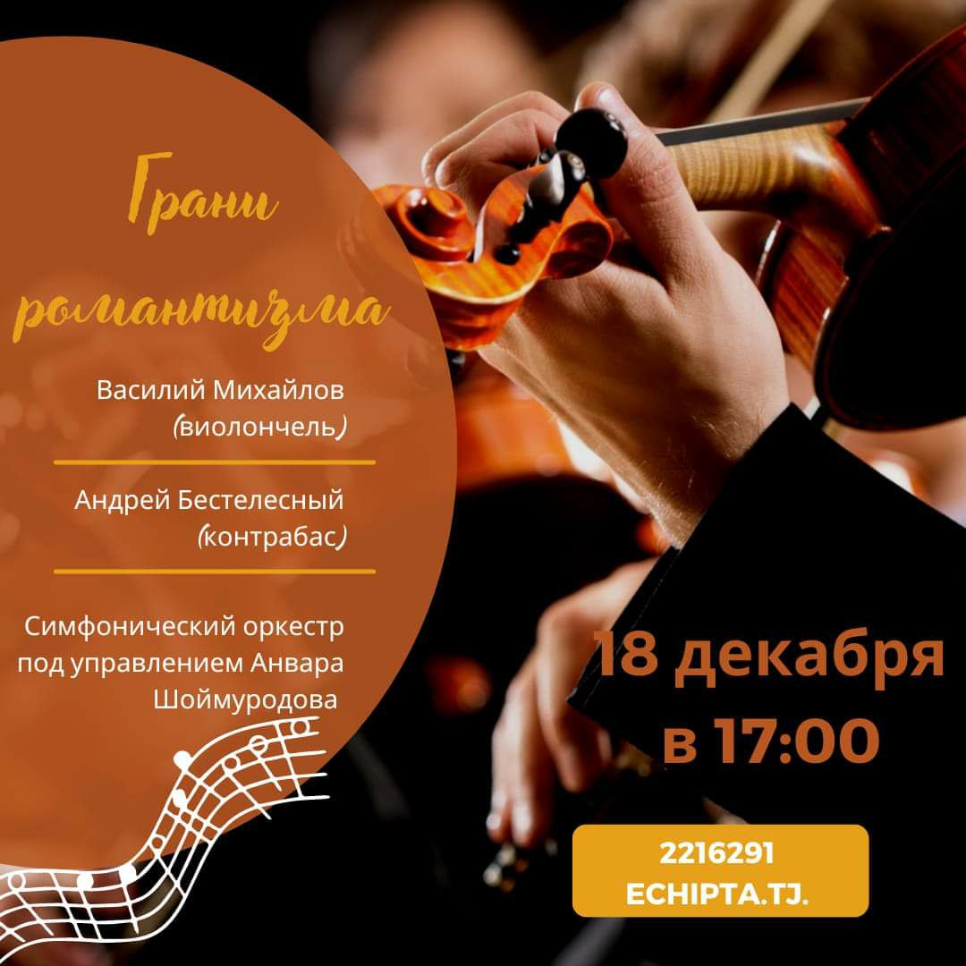 В театре оперы и балета им. Айни 18 декабря в 17:00 состоится концерт оркестра для виолончели и контрабаса. Это большой международный проект с участием солистов из России Андрея Бестелесного (контрабас) и Василия Михайлова (виолончель).