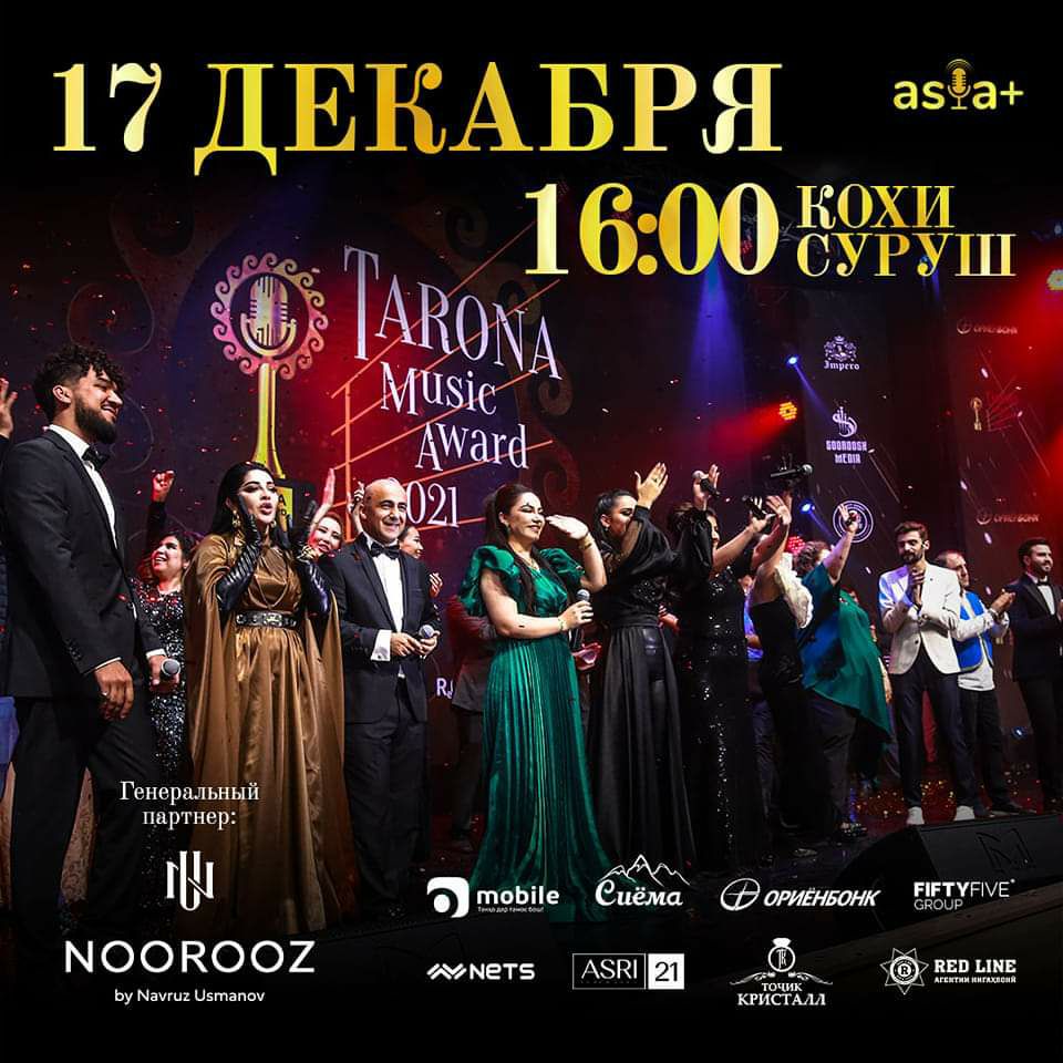 В столичном «Суруш Холле» 17 Декабря в 16:00 состоится гала-концерт с последующей церемонией вручения музыкальной премии Tarona Music Award. В этом году масштабное мероприятие посвящено 20-летию первой независимой радиостанции Душанбе Радио Asia-Plus.