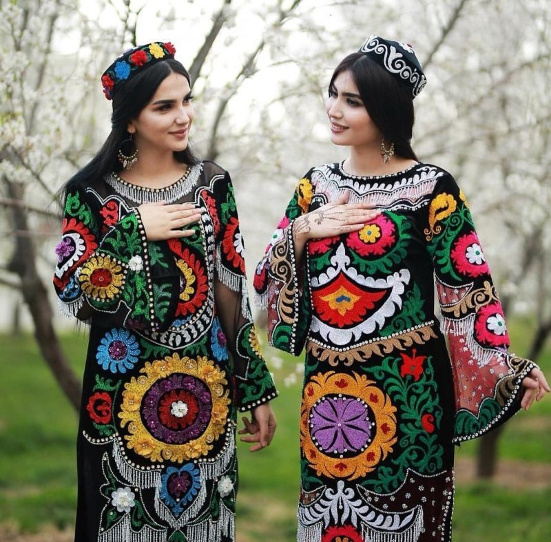 Поэтому многие платья кулябских красавиц шьют из красного полотна. Даже узор основной вышивки в центре подола имеет очертания круга, то есть солнца.