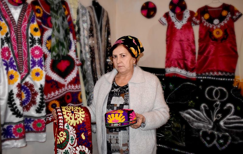«Чтобы традиции этой вышивки не потерялись, ведь с каждым годом мастериц становится все меньше, я набрала группу из 18 молодых девушек и в настоящее время учу их вышивать», — рассказывает Оламби Назарова.