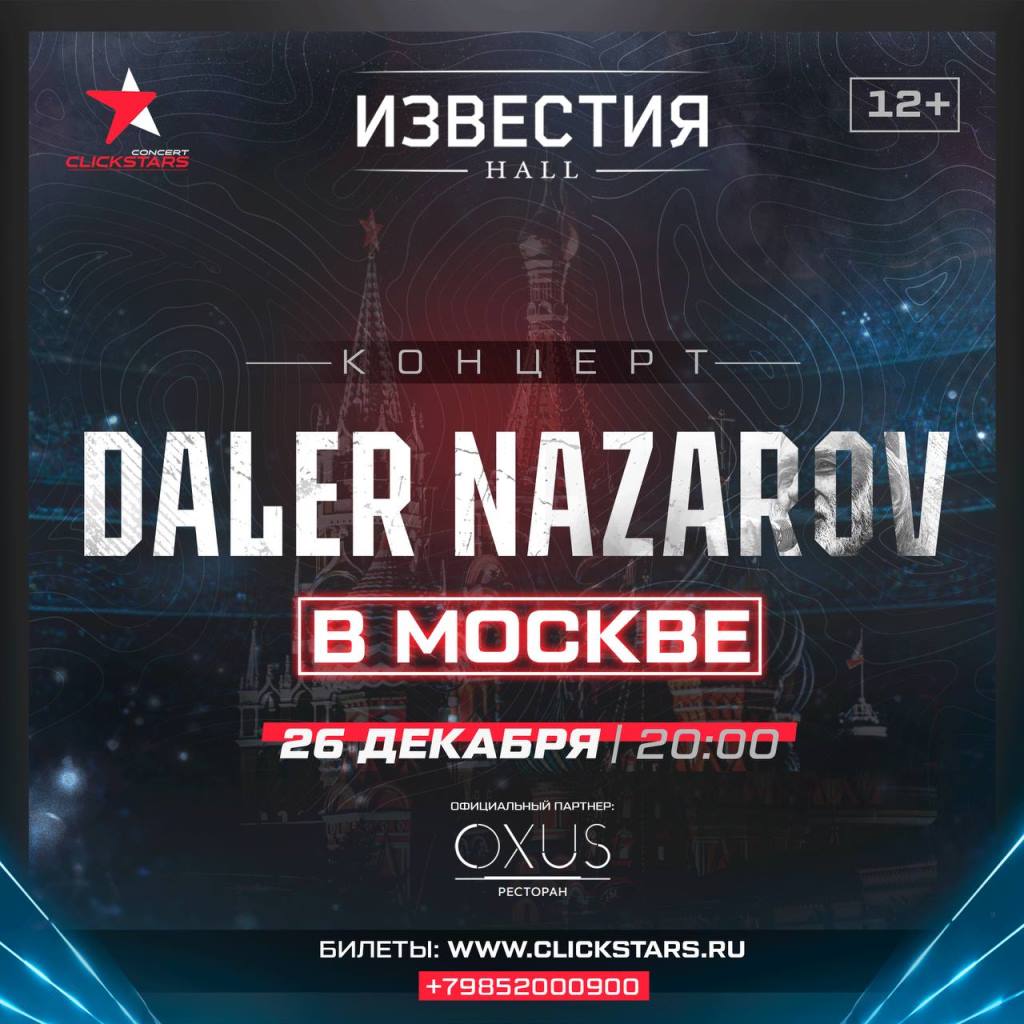 26 декабря в 20:00 в концертном зале "Известия Холл" в Москве — на одной из лучших площадок России  — пройдет концерт мэтра таджикской эстрады Далера Назарова. Об этом "Азия-Плюс" сообщили в агентстве "Click Stars", который выступает организатором концерта. Чуть позже он даст концерт и в Душанбе.