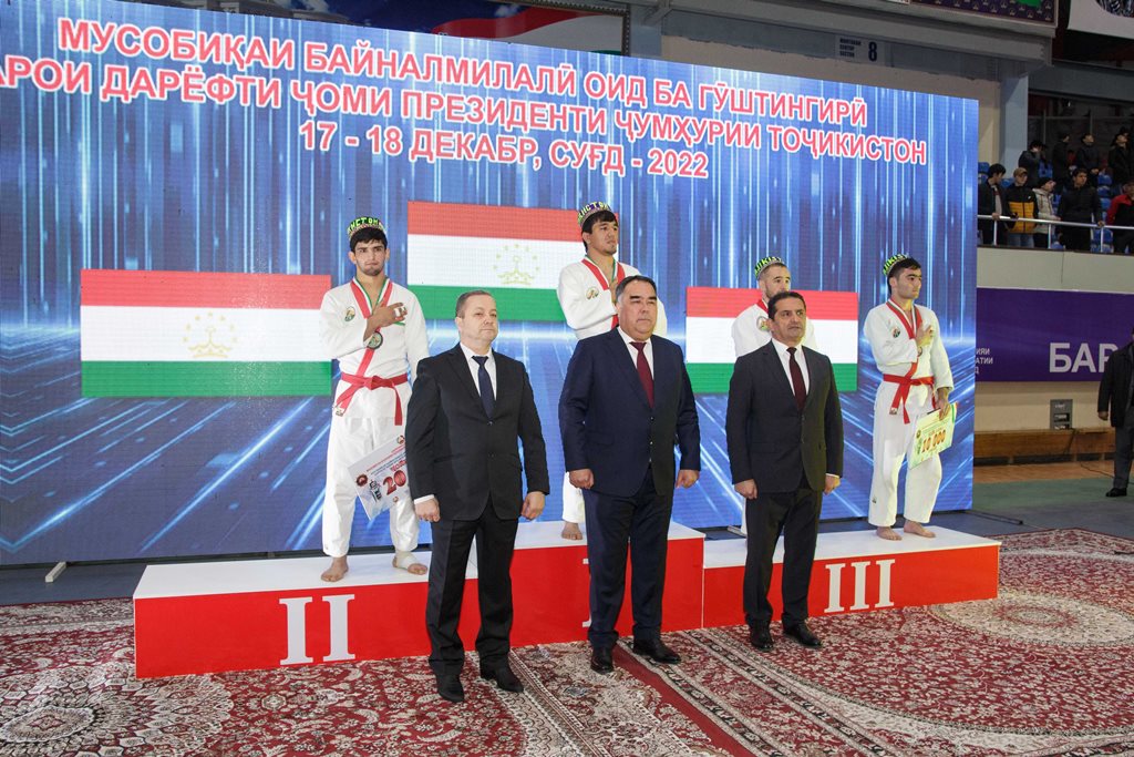 18 декабря во Дворце спорта города Худжанд прошли международные соревнования по борьбе в категории "гуштини милли" среди взрослых. В областном мероприятии приняли участие председатель Согдийской области, мэр города Худжанда, руководители правоохранительных органов, Комитета молодежи и спорта при правительстве страны, представители Международной федерации по гуштингири и др.