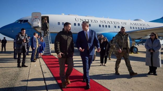 Самолет с Зеленским на борту приземлился на авиабазе "Эндрюс" под Вашингтоном примерно в полдень по местному времени.