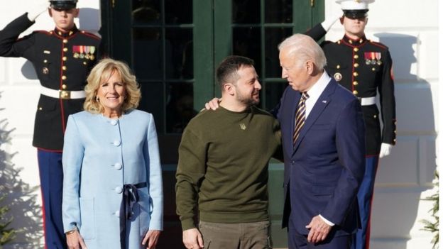 В начале официальной программы визита Зеленского у Белого дома встретили президент Байден с супругой. Эти кадры демонстрировало в прямом эфире американское телевидение, пишет Би-би-си
