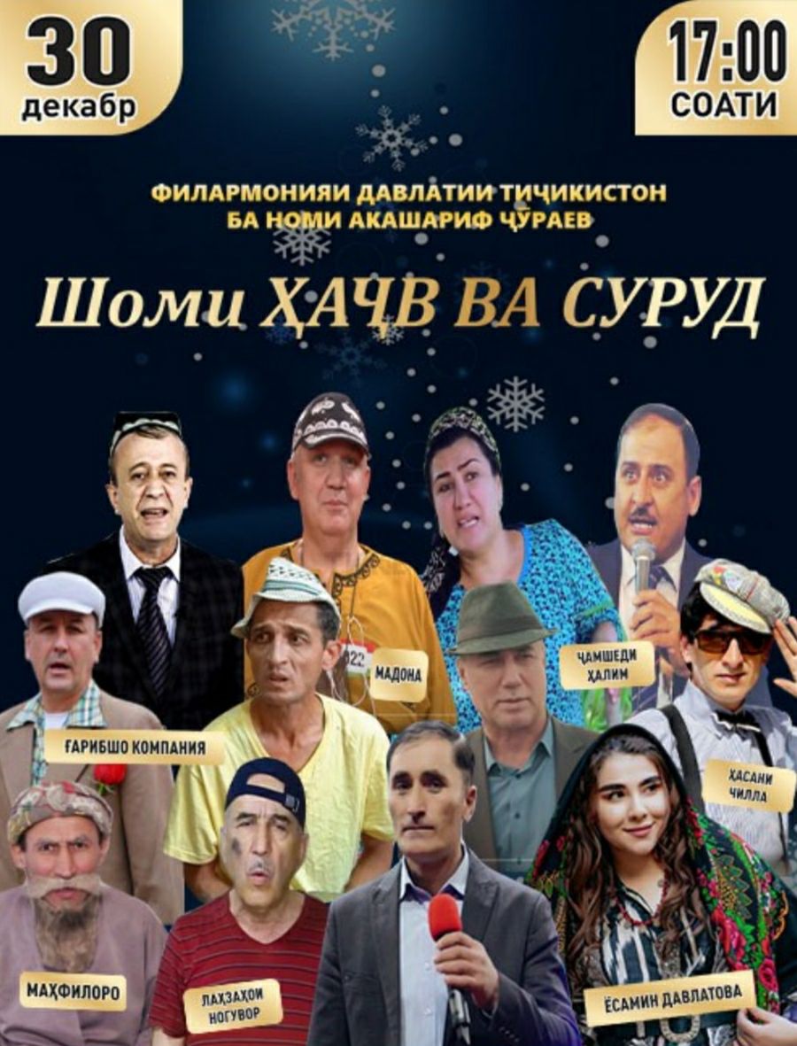 В филармонии имени А. Джураева 30 декабря в 17:00 состоится вечер юмора с участием известных комиков.