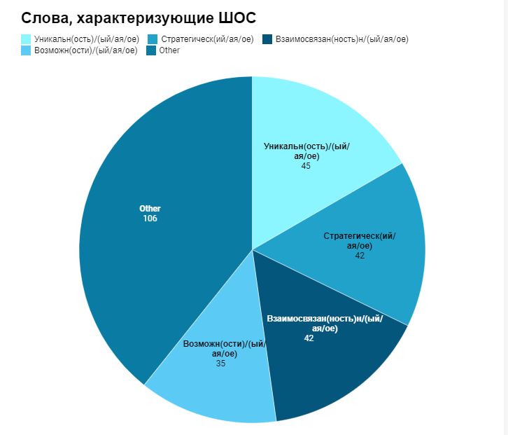 Частота употребления слов об уникальности ШОС подтверждает ее особенную роль в Евразии. При этом, подобная "особенность" и "непохожесть" на другие организации придает ей некий потенциал.