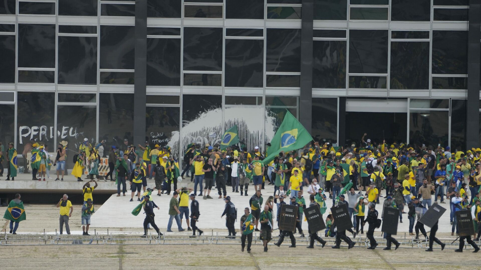 Протестующие начали штурмовать правительственные здания, в том числе Верховный суд, Национальный конгресс и рабочую резиденцию главы государства — дворец Планалту.