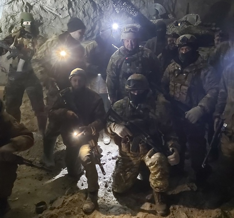 Его пресс-служба публикует фотографии, на которых Пригожин позирует с бойцами по разным версиям либо в одной из соляных шахт под Соледаром, либо в подземном музее, который тоже оборудован в бывшей шахте.