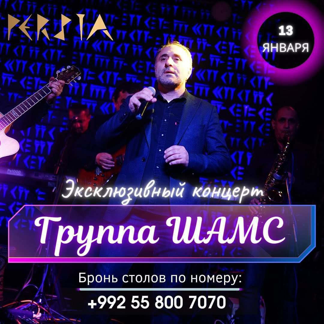 В ресторане Persia 13 января, в 20:00 состоится эксклюзивный концерт группы «Шамс» в этнографическом стиле. Посетители смогут насладиться любимыми хитами и новыми песнями в живом исполнении легенд таджикской эстрады.