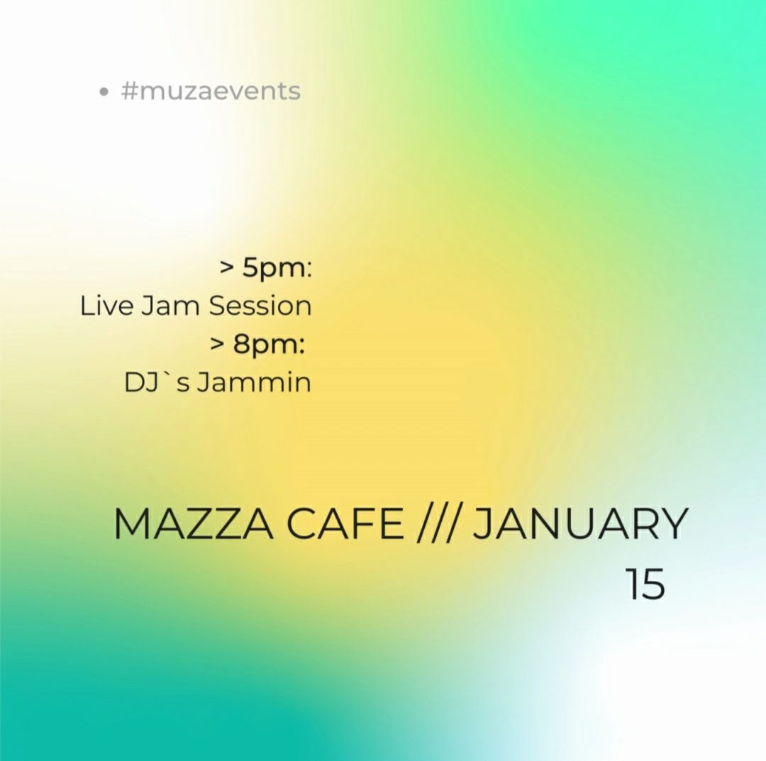 В кафе Mazza 15 января, с 17:00 до 20:00 состоится живой джем-сейшн, куда музыканты могут прийти со своими инструментами, вместе поимпровизировать и поджемить. Даже если у кого-то нет инструментов, но есть огромное желание помузицировать, организаторы творческого объединения MUZA предоставят свои.