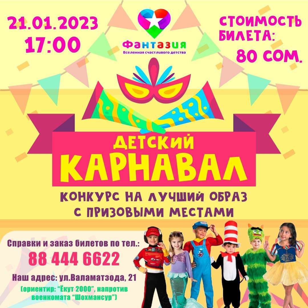 В Детском развлекательном центре «Фантазия» 21 января, в 17:00 начнется сказочный весёлый Карнавал под зажигательные ритмы с увлекательными играми, конкурсами и крутыми призами.