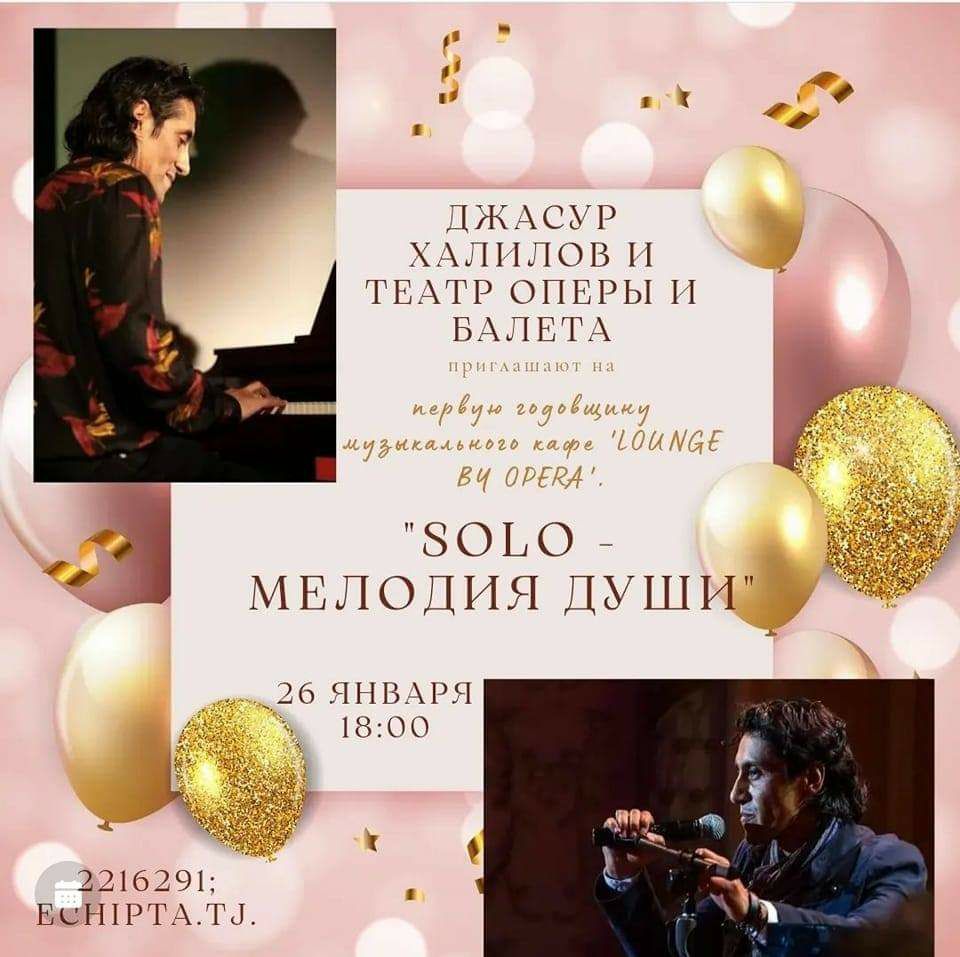 В Государственном академическом театре оперы и балета имени Садриддина Айни 26 января, в 18:00 состоится сольный фортепианный концерт Джасура Халилова по случаю первой годовщины театрального кафе Lounge By Opera. Вас ждут живая музыка, напитки с лёгкими закусками, и роскошное убранство второго этажа фойе театра.