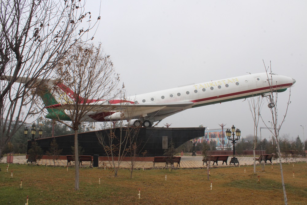 Еще один символичный объект – легендарный ТУ-134, который более трех десяток лет верно служил аэропорту, совершая международные рейсы. Он установлен в качестве постамента, как дань всем тем, кто внес вклад в таджикскую авиацию и летал на этом лайнере. Их имена выточены на мраморной табличке. Многих уже, к сожалению, давно нет в живых.
