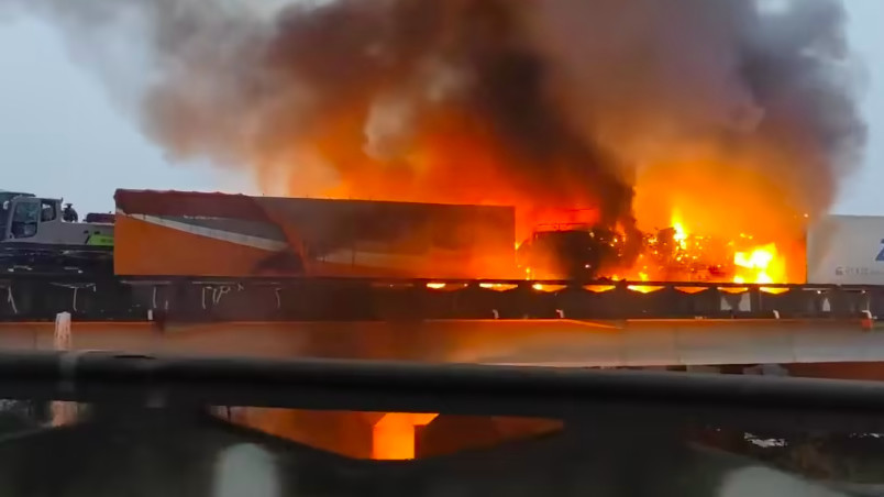 На опубликованных в сети кадрах видно несколько горящих грузовиков с логотипами компаний по доставке, раздавленные и перевернутые автомобили.