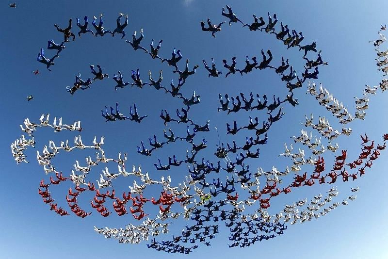 Так спортсмены установили новый мировой рекорд в воздушной акробатике. Для участия в этом трюке в Таиланд съехались ведущие парашютисты из 42 стран мира. А сам рекорд был посвящен 72-летию королевы Сирикит.