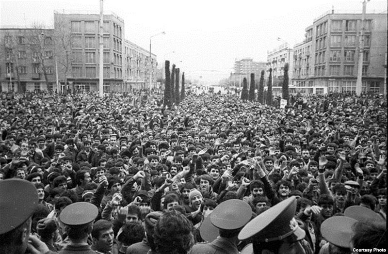 «…Стреляли по любой движущейся мишени и просто по темным переулкам и окнам домов. К моменту объявления по радио чрезвычайного положения уже было убито 82 человека, в большинстве своём к пикетам отношения не имевших…». Поводом для ввода войск послужили армянские погромы.