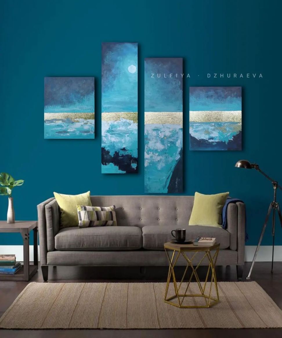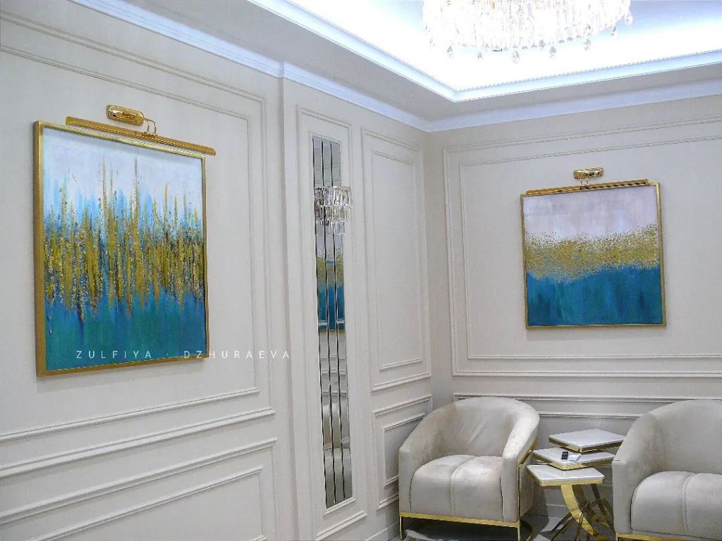 — Я начала свою деятельность в сфере искусства ещё не окончив художественное училище, — рассказывает Зульфия. — Подрабатывала, рисуя настенную роспись. Мои работы можно увидеть во многих кафе. Затем после окончания архитектурного факультета, я решила работать в сфере интерьерного дизайна. Также я писала картины одновременно, так как был спрос на абстрактную живопись.
