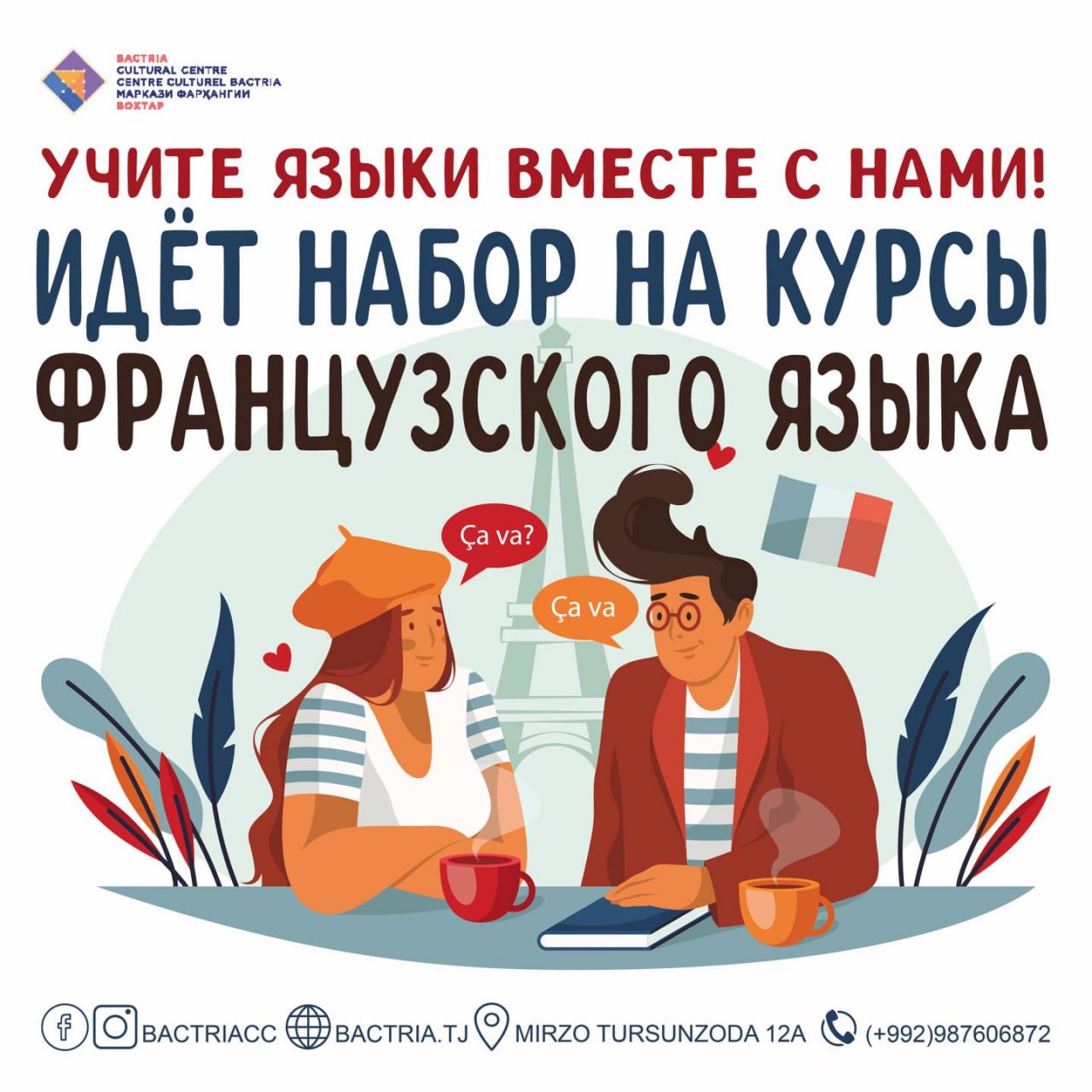 Стоимость курса французского языка — 550 сомони, длительность — 3 месяца (сумма указана за весь период обучения).