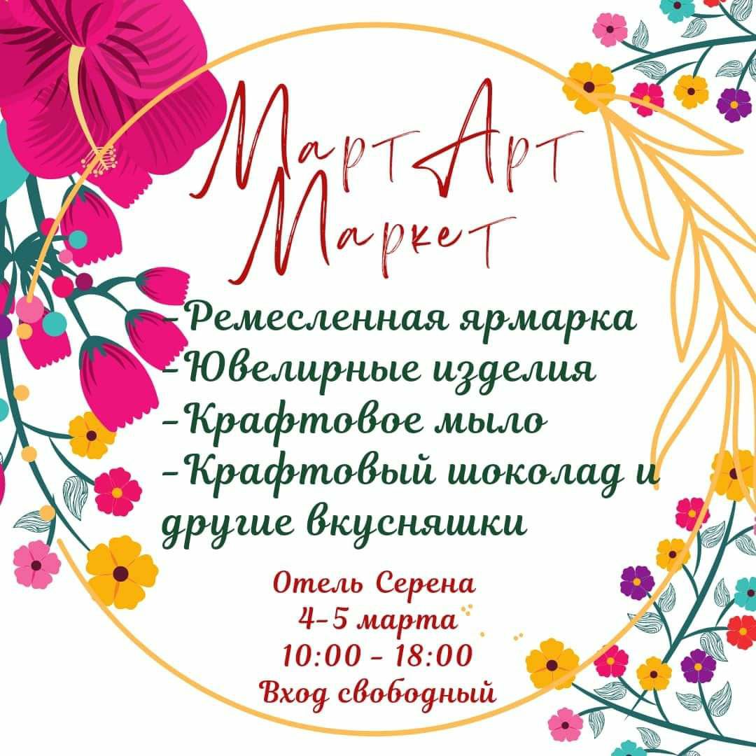 В отеле "Серена" 4 и 5 марта с 10:00 до 18:00 пройдёт ежегодная ярмарка ремесленников "МартАртМаркет", и каждый гость получит уникальную возможность приобрести оригинальный подарок близким на День матери.