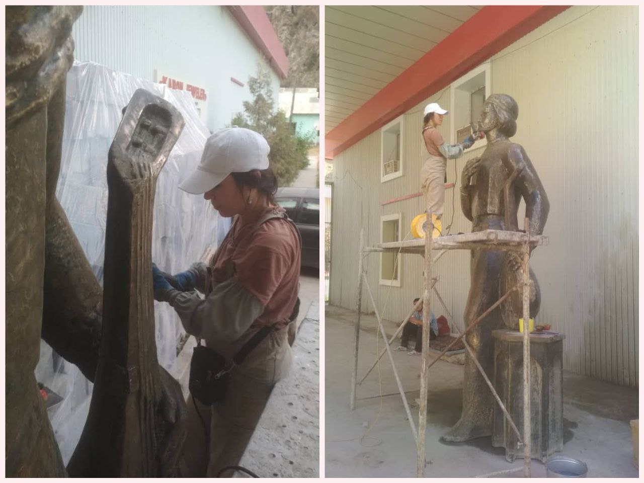 Девушка испытывает адреналин и удовольствие, когда в процессе работы поднимается на высоту. Так было, когда она работала в Дарвазе над монументальной скульптурой народного гафиза Акашарифа Джураева.