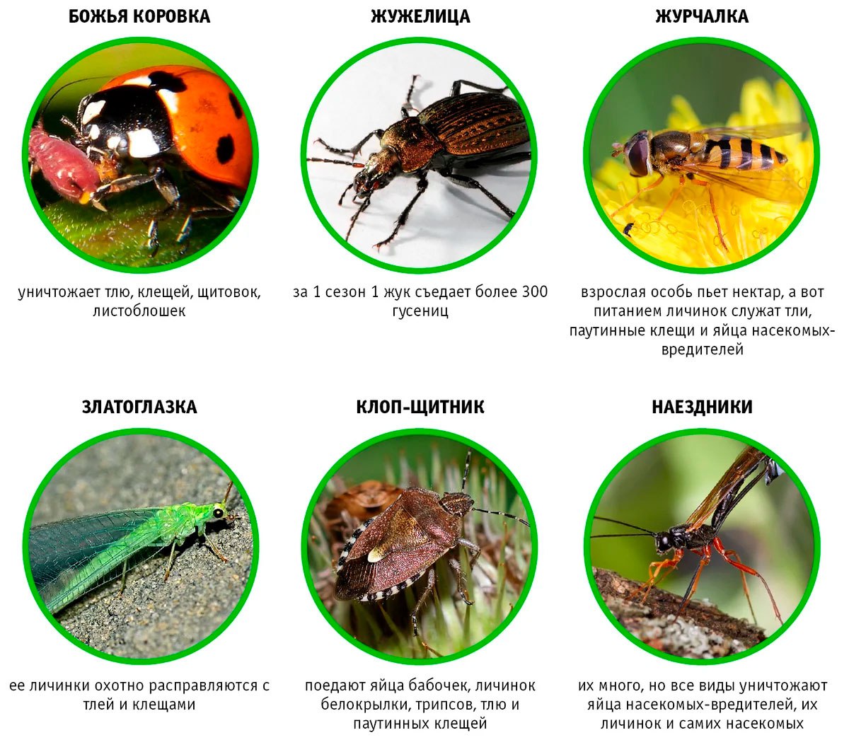 Это определенные виды таких насекомых, как наездник, божья коровка, трихограмма и других, которые уничтожают вредителей, например, тлю.
