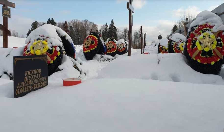 "Озодлику" удалось установить личности некоторых из них. Например, 37-летний таджикистанец Муродбек Саидов содержался в российской тюрьме с середины 2020 года, а погиб в конце ноября 2022 года, а 45-летний Шухрат Юсупов в июле 2022 года был признан виновным в хищении имущества китайского предпринимателя и отправлен за решетку. На надгробной табличке указано, что завербованный в ЧВК "Вагнер" Шухрат погиб 23 декабря 2022 года.