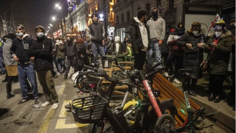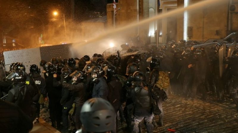 В Тбилиси продолжаются массовые акции протеста против закона об "иностранных агентах", который во вторник вечером грузинский парламент одобрил в первом чтении. В среду вечером полиция применила против протестующих водометы и слезоточивый газ, пишет Русская служба Би-Би-си.