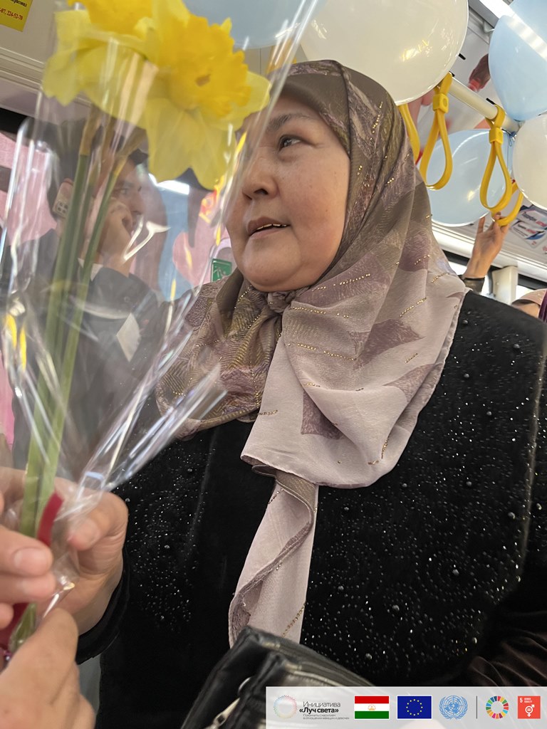В столице про нее уже знают многие. Женщины с нетерпением ждали, когда на улицах города появится наш праздничный автобус, наполненный цветами, подарками, поздравлениями и приятными сюрпризами.