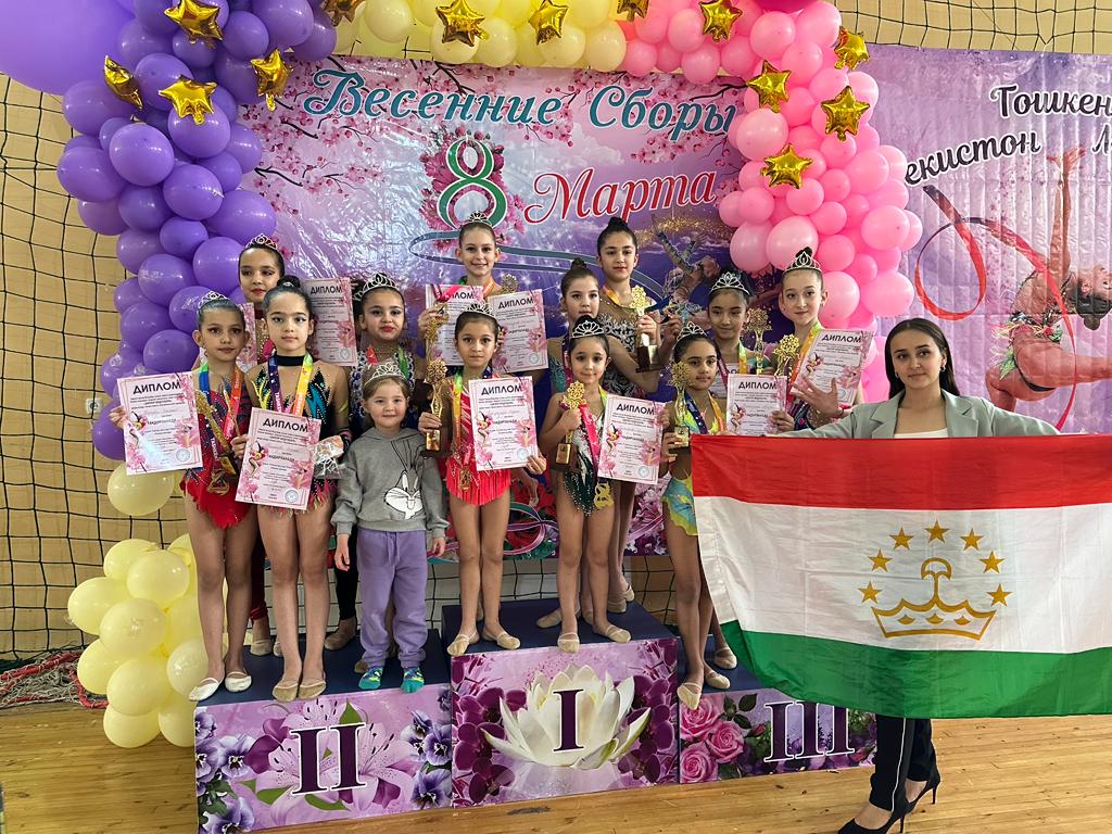 Целых 14 золотых наград привезли юные таджикские гимнастки из Ташкента, где прошел открытый турнир по художественной гимнастике "Хрустальные звездочки".