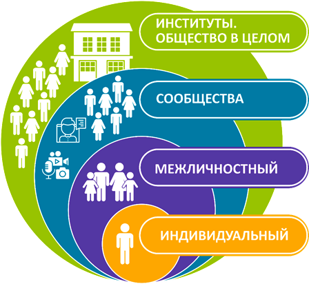 Коммуникационная стратегия опирается на 4 уровня социально-экологической модели: