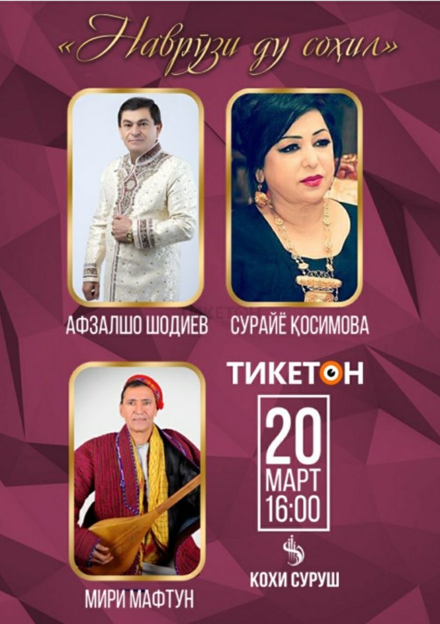 Гостей ждут выступления артистов Сураё Косимовой, Афзалшо Шодиева и Мири Мафтун.